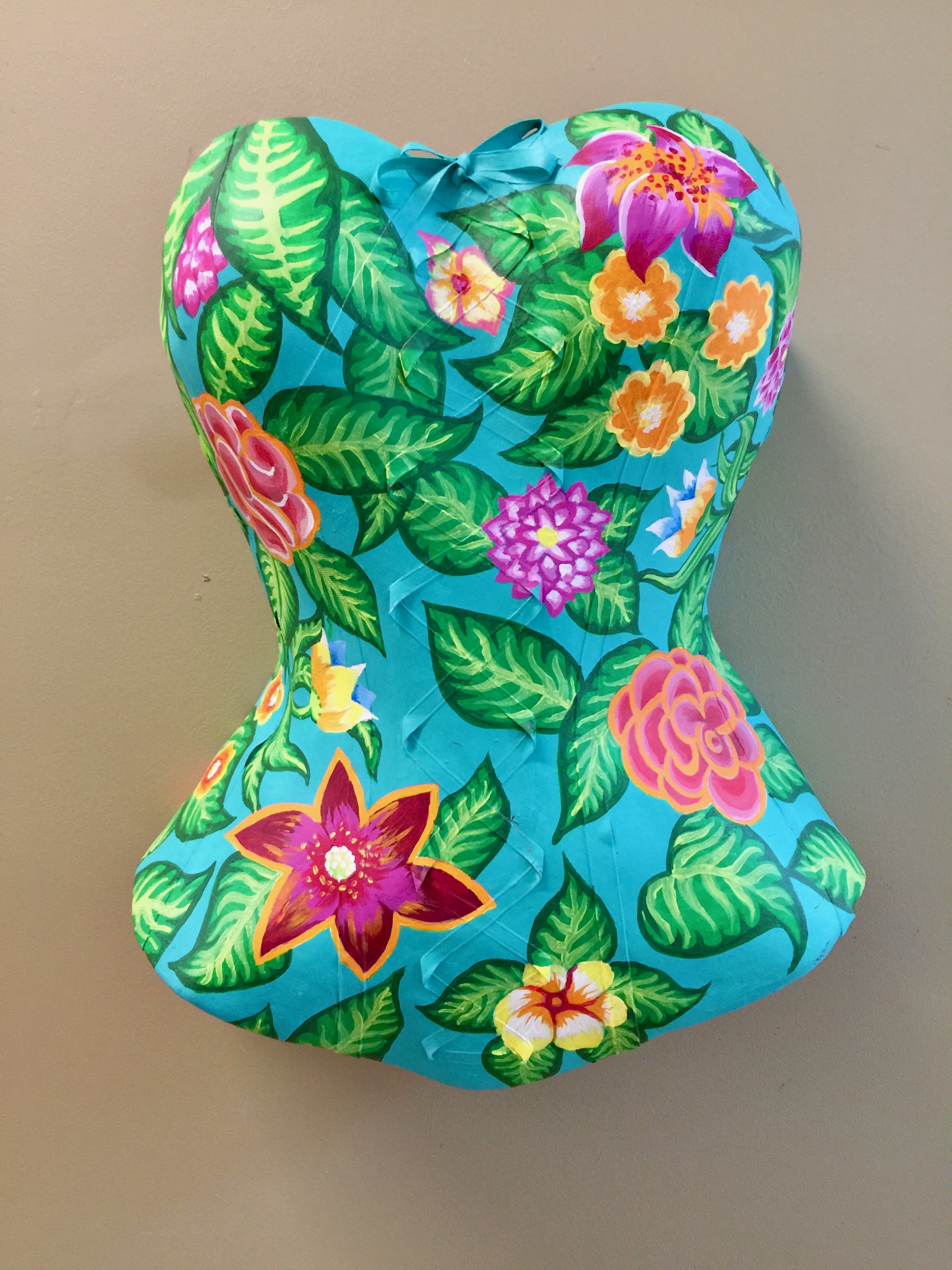 She creates these provocative — and sometimes tongue-in-cheek — bustiers with paper mache and a variety of mixed media.
